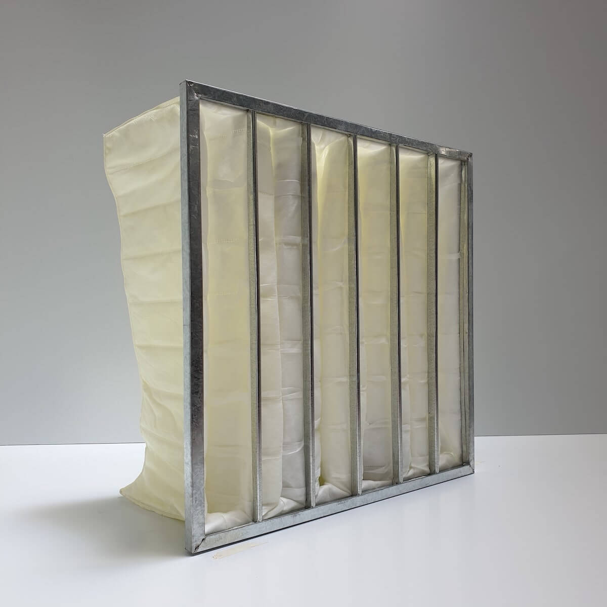 Filtro de bolsa. Se puede utilizar en una gran cantidad de aplicaciones de filtración secundaria para reducir la carga de contaminantes y prolongar la vida útil de filtros de alta eficiencia. Es el filtro ideal para filtración de mediana eficiencia.
