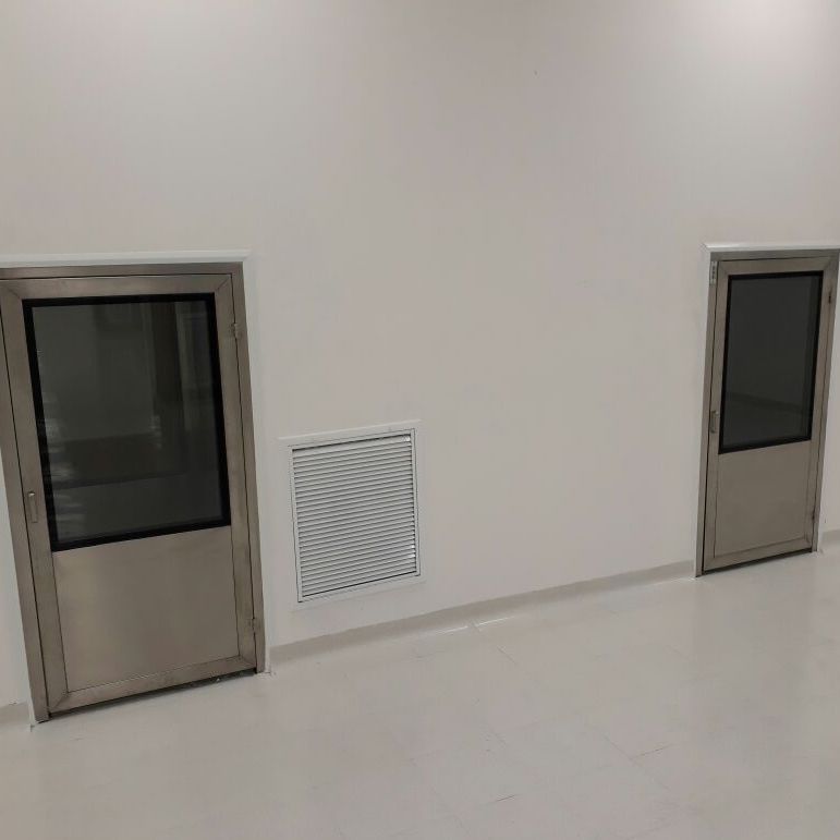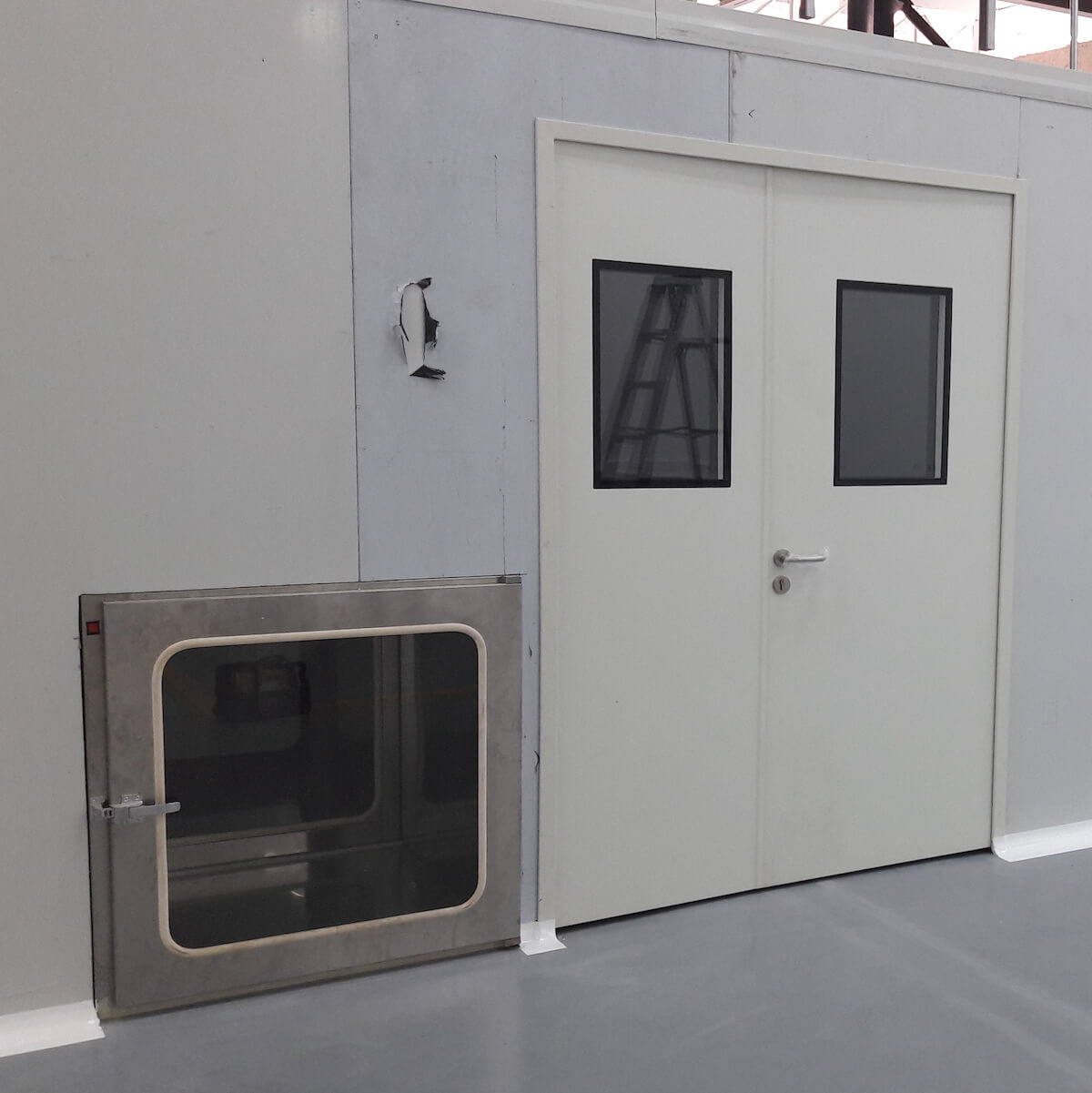 Pass through de diferentes tamaños y configuraciones, hechos de acero inoxidable. Cuentan con un sistema para que no se puedan abrir las puertas simultáneamente.